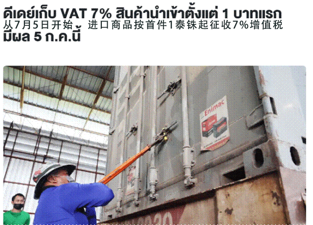 此前,泰国对价格低于1500泰铢的进口商品给予关税豁免。但此次公告明确,所有进口商品从1泰铢起,就需按商品税则缴纳进口税,并同步计征7%的增值税。海关预计,此政策调整每年将为泰国带来约30亿泰铢新增税收。