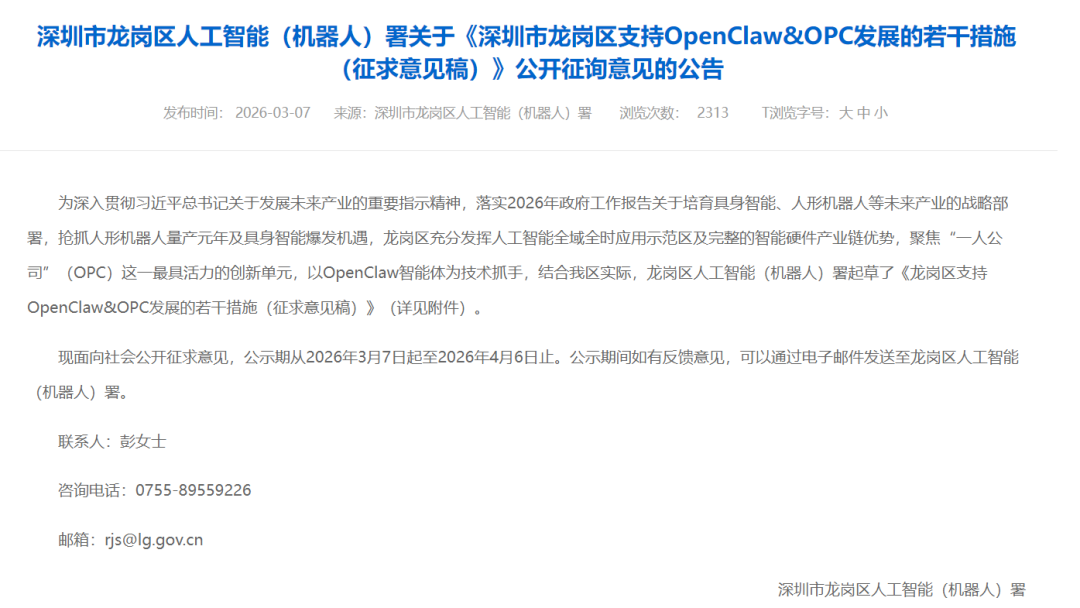 那这个OpenClaw火到什么程度?不仅火山引擎、阿里云、腾讯云等大厂纷纷布局,深圳龙岗区甚至专门推出“龙虾十条”政策,鼓励搭建“龙虾服务区”、提供免费部署服务,对核心代码贡献、技能包开发等项目,最高补贴200万元,每年遴选示范应用项目,按实际投入30%给予最高100万元奖励,全力推动“龙虾”落地应用。