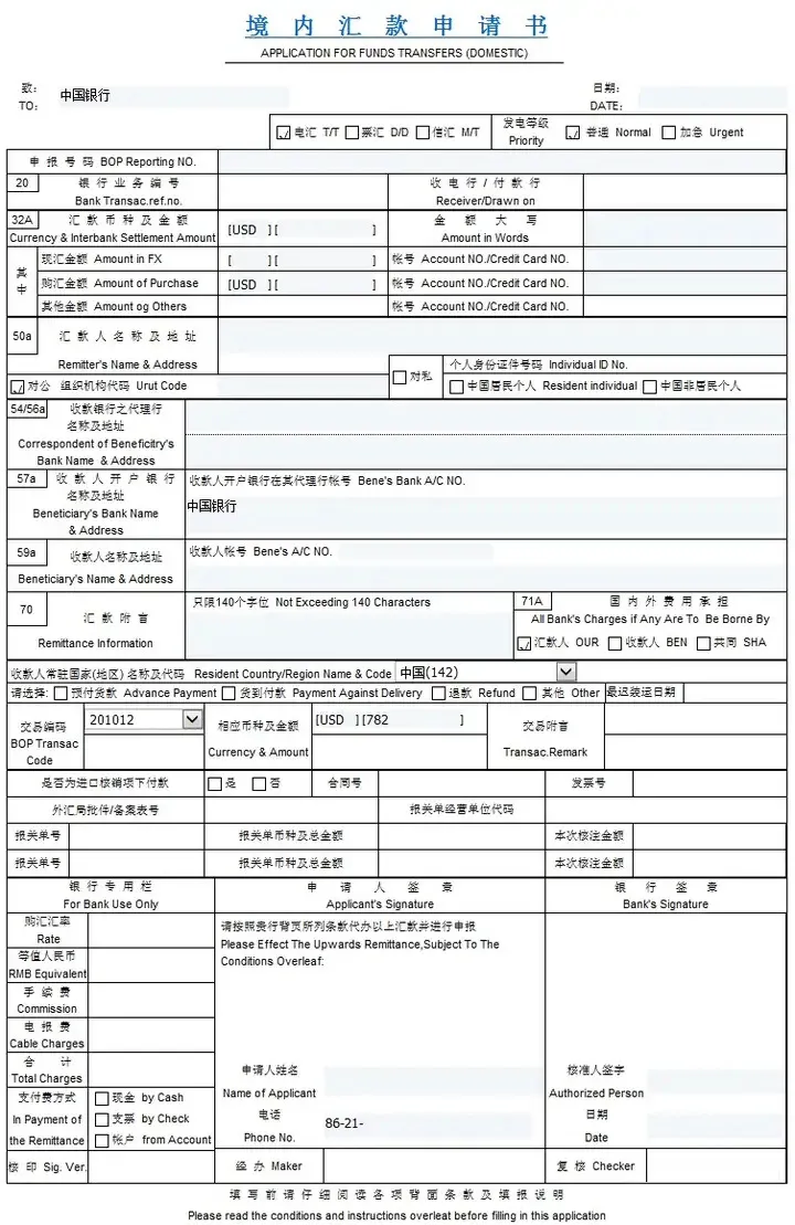 这里以中国银行为例,给大家分享其中一个所需要填写的表格: